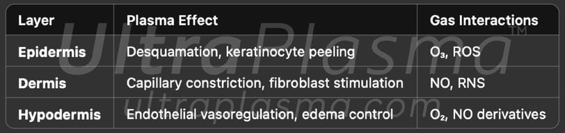 Each plasma type is selectively activated through a digital waveform generator and gas-mix modulation interface, allowing precise penetration and biocompatible energy transfer.