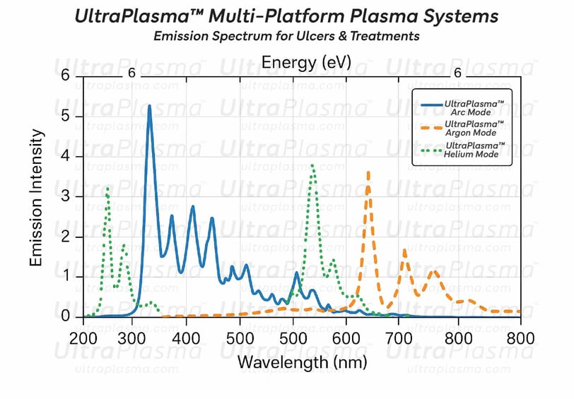 UltraPlasma™ multi-platform plasma systems, through a carefully orchestrated interaction of arc, argon, and helium plasma emissions and reactive gas species, offer a revolutionary approach to chronic ulcer treatment. By addressing the multifaceted impairments in chronic wound beds — including infection control, oxygenation, inflammation modulation, and tissue regeneration — UltraPlasma™ presents an integrated, safe, and highly effective solution.